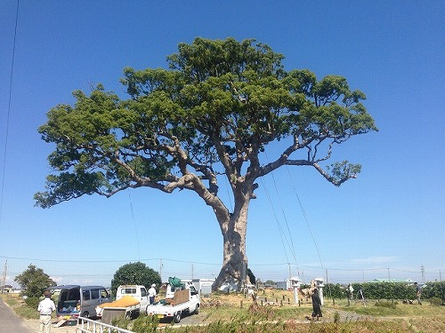 県指定天然記念物・長太(なご)のオオクスに枯れた枝が目立ち始めた。落枝による見物人への配慮から、除去することとなった。